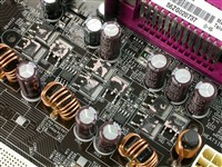 由于nForce4系列芯片组仍然只支持AC’97音频规范,因此板载的声卡Codec也是常见的ALC850。CPU供电部分所采用的电容是Nippon Chemi-Con的KZG系列产品,品质自然不是问题。