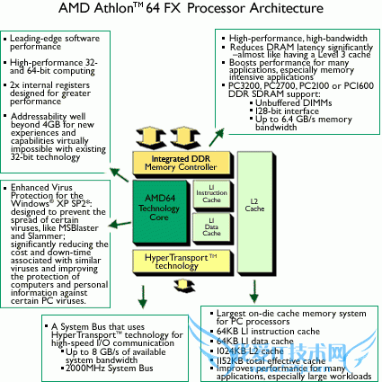 FX-57是自Athlon 64处理器发布以来的第一款使用了全新技术的FX处理器,因为以往的FX处理器都是基于130nm制程Clawhammer核心制作的,而 FX-57则是基于最新的San Diego核心,采用了90nm工艺。这样做的目的是为了减少热量的产生,这也是众多玩家所期望的。