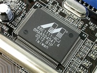 Marvell 88E8001是一款PCI总线的千兆网络控制器,也是各主板上比较常见的一款千兆网络控制器。而Marvell 88E1111则是一款Transceiver(也就是PHY芯片),与nForce4 SLI芯片组内建的千兆网络MAC控制器相配合以实现nForce4系列芯片组特有的各种高级网络功能(当然也包括了硬件防火墙功能)。