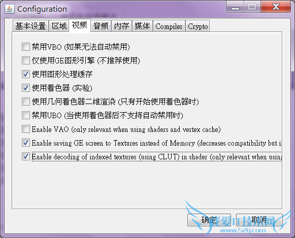 * 選項-->配置-->視頻 (基本上勾選下面圖中4個選項即可)