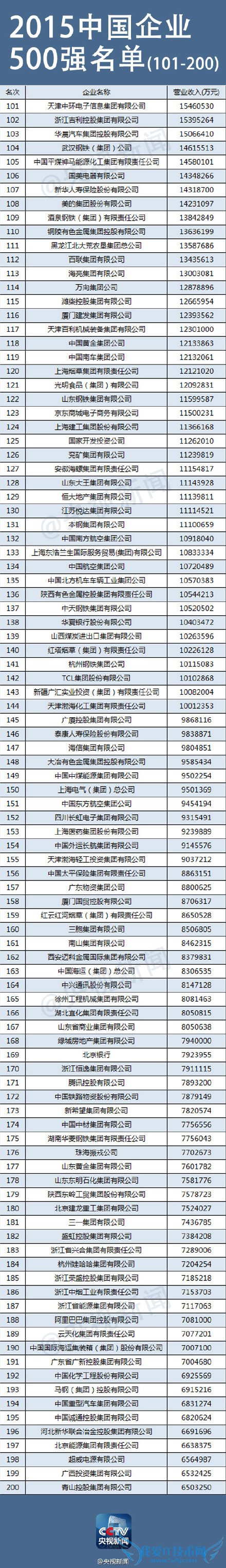 相关问题:2015中国企业500强出炉 前十名都有谁
