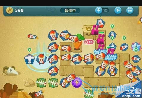2.打掉道具以后右下角会出现空位,补上火箭炮,然后打那个小仙人球,打出来会是一个减速的星星