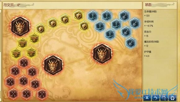 红色9个攻击,黄色4个护甲5个成长生命,蓝色5个减CD4个成长魔抗,精华3个攻击,比较全面的一套符文。
