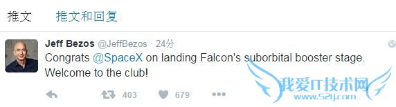 亚马逊CEO贝索斯在Twitter上对马斯克表示祝贺