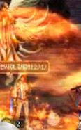 浑身冒出黑暗气息环绕周身,并在头顶形成蚊香一般的黑暗漩涡。在这种状态下奥兹玛无敌。