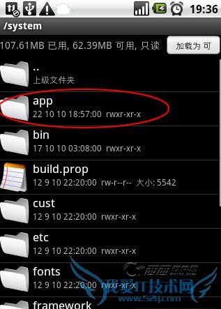 3,看下图,进入system文件夹后,可以看见最上面的app文件夹,你再用手指点它一下