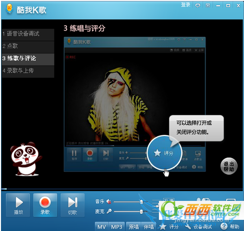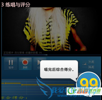 3、打开最下边的“评分”按钮,录完歌曲后,可以看出你唱的歌曲,能吃多少分