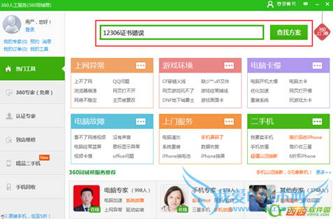 在搜索栏内输入“12306证书错误”,并点击查找方案开始搜索。