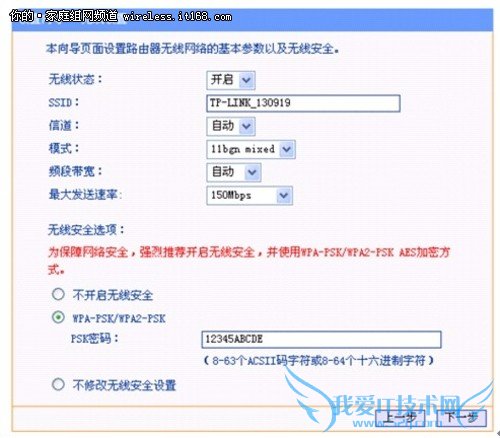 当WAN口设置完毕后,点击下一步,就进入到了无线网络的设置环节。