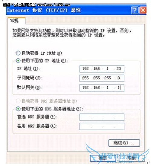当然也可以手动设备,但手动设置的时候,一定要注意设置成192.168.1.X (X一定是大于1小于255的一个字)子网掩码是:255.255.255.0,网关设置为:192.168.1.1。如下图所示: