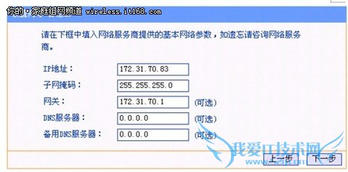 如果您的上网方式为静态IP,网络服务商会给您提供IP地址参数,则需要在下图所示页面中输入ISP提供的参数: