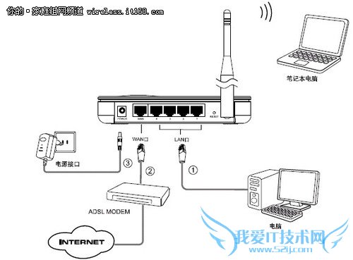 接通电源;然后将从Modem上引出来的网线插入到WAN口上,有的家庭可能现在已经不使用ADSL Modem了,那么就直接将入户网线插入到WAN口即可;如果是台式机使用有线方式进行连接的话,就将网线的一端插入到无线路由器的LAN口上,另一端插入到PC机的网卡上即可。但一定要保证网线的做法是正确的,如果非专业人士最好是买线根网线。无线设备就不用多说了。