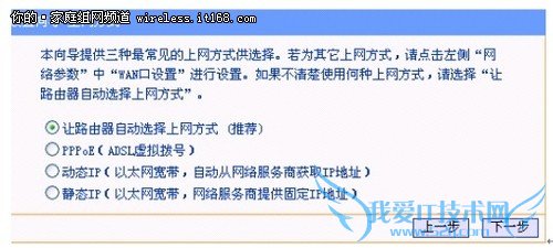 这是现在的无线路由器比较智能的地方,因为有的用户可能不知道自己的上网类型,那么就可以选择这一项,路由器会自动判断您的上网类型,然后跳到相应上网方式的设置页面。为了保证路由器能够准确判断您的上网类型,请保证您的路由器已正确连接。所以这一项也是我们所推荐的。