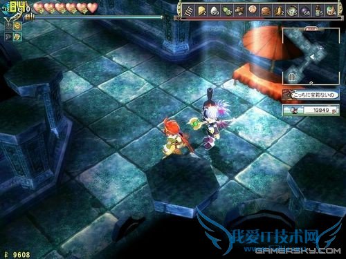 3.水神殿的地下冥想场:第三层里面把外边的4个红绿灯都弄到绿灯亮就OK了,多试几次,男主角的攻击可以熄灭灯泡,女主角的攻击可以点亮灯泡。木宝箱里面就是饰品孔②了。