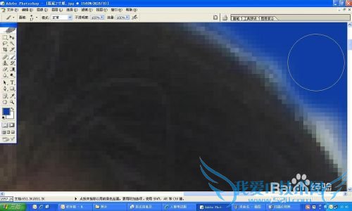 9、然后将图片放大至可以看到像素,用蓝色画笔填涂边缘。