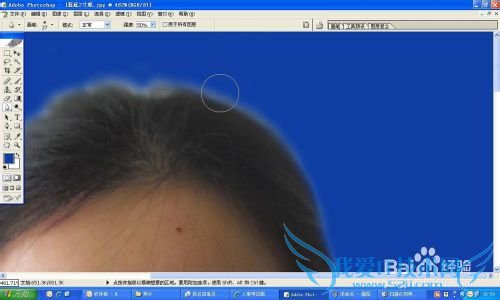 6、先使用蓝色画笔将头部周围的轮廓画出来,便于下一步的操作。