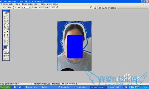 用套索工具把人像框住,之后点右键,反向选择,删掉,选择背景颜色为蓝色