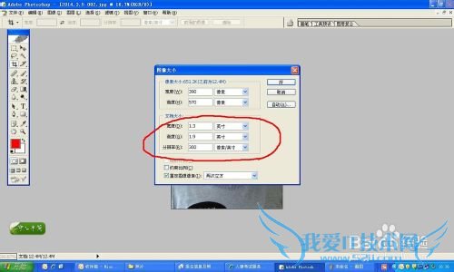 4、选择图像大小,然后在长度选择1.9英寸,宽度选择1.3英寸,点击确定。