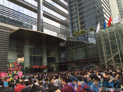 腾讯4000员工抢红包 从39楼一路排到大厦外