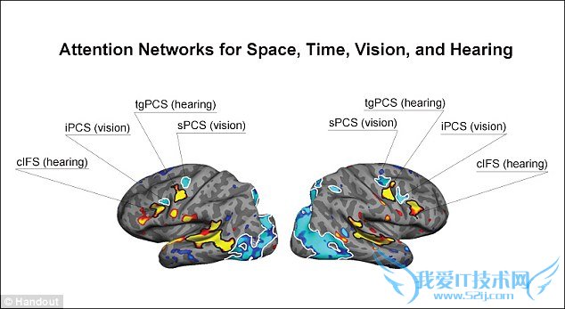 实验显示这两个网络会密切合作,视觉网络帮助我们理解空间里发生的事情,而听觉网络帮助我们理解时间线上发生的事件。