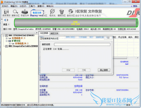 打开DiskGenius,你就可以在磁盘列表中看到相关没有在电脑中显示的磁盘了,然后选择你要修复的磁盘,然后点左上角的“seagate”,“搜索已丢失分区(重建分区表)”。