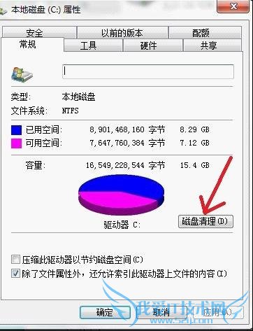 1.对C盘单击右键—属性,出来如下画面,单击磁盘清理