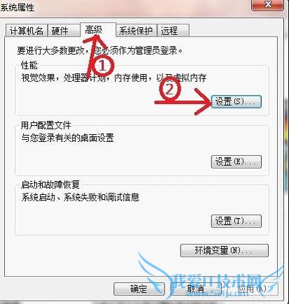 5.删除了系统还原的文件,别急着关闭刚才的窗口,把选项卡切换到“高级”,单击箭头2,设置