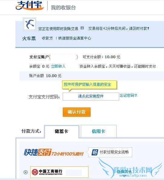 整个过程和淘宝购物一样,支付宝购票可以选择用支付宝快捷支付、支付宝余额或余额宝进行付款,整个支付过程短短5秒就能完成,也没有收取手续费。
