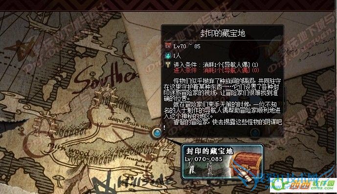 这次的藏宝地活动地图在格兰之森处,等级要求为70以上,玩家每天可以免费进入一次,而想要再次进入需要在商城购买门票也就是导航人偶,价格为10W金币一天最多购买两个。
