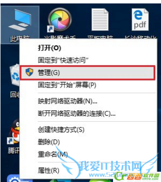 1、首先在Win10电脑桌面上找到“此电脑”的图标,在该图标上点击鼠标右键,选择菜单中的“管理”命令,这样就会弹出一个“计算机管理”窗口