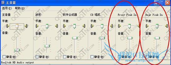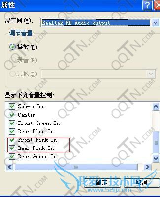 C)在该面板中,确认已经勾选上了 “输入监视器”.有些机器上 叫做“麦克风”或者Front Pink In和Rear Pink In选项