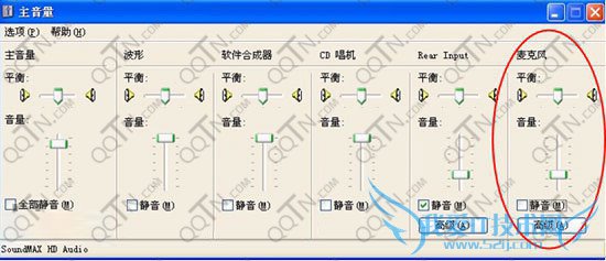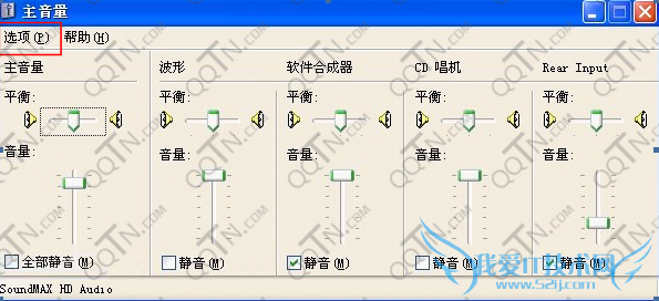 A)可以打开 控制面板->声音和音频设备->音量->高级,或者直接双击桌面右下角的音量控制图标,打开音量控制面板.