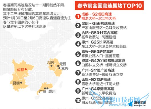 凤凰科技讯 1月26日消息,高德地图联合全国多家交通管理部门正式发布了《2016年春节出行预测报告》。据了解,本次报告融合了高德地图交通大数据和位置大数据,同时结合了山东高速、江苏高速、广州交警等全国各地交警的大数据信息。