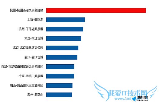 除了游客涨幅最大的景区外,春节作为出行高峰,风景名胜区也将迎来大量客流。根据高德地图位置大数据显示,春节期间最热门(游客人数最多)的景区为杭州西湖,而其它top10依次为江西上饶的鄱阳湖、杭州千岛湖、大理古城、北京奥林匹克公园、丽江古城、青岛崂山、武当山、凤凰古城、雁荡山(图7)。