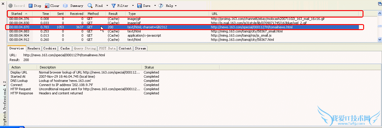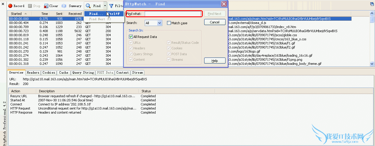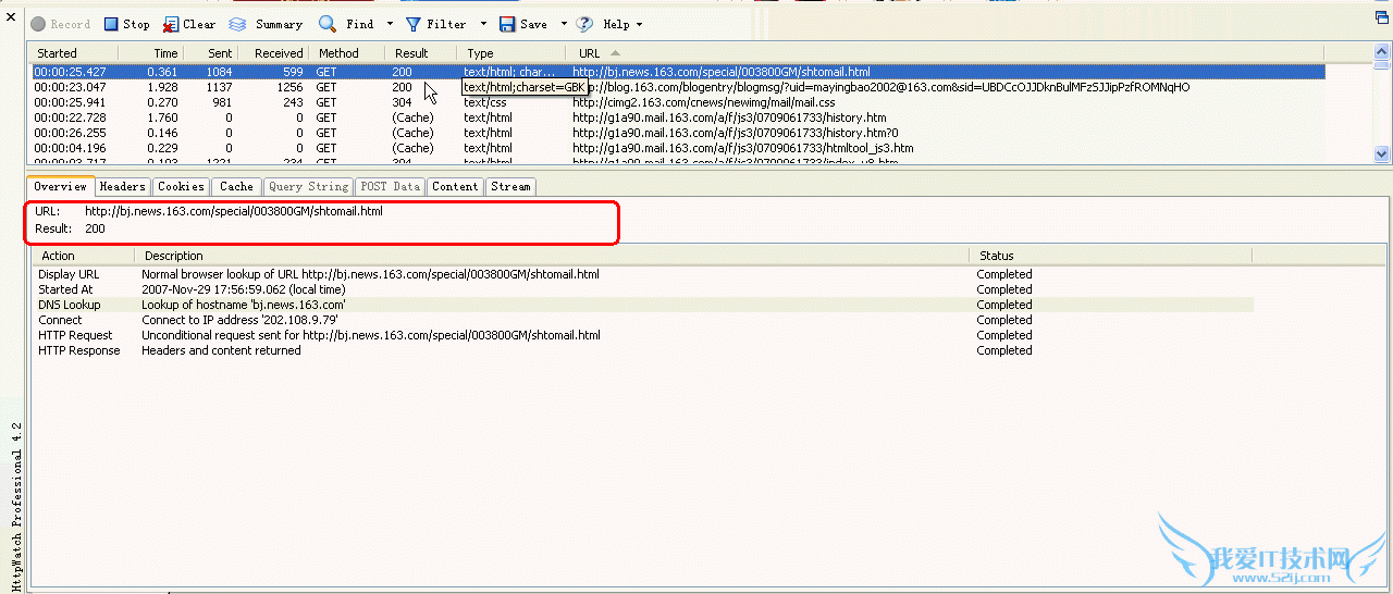 以下用登录我的邮箱mail.163.com例子来展示Httpwatch: