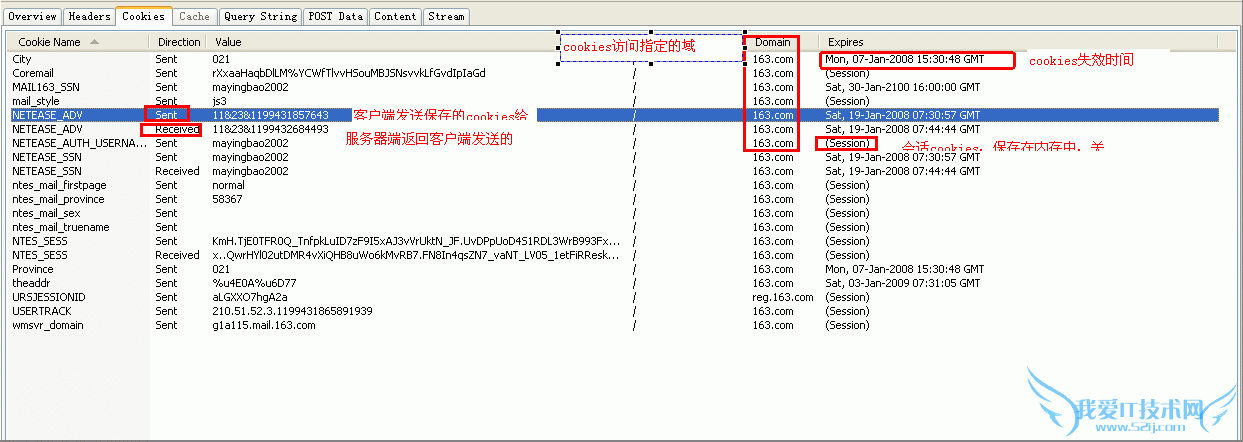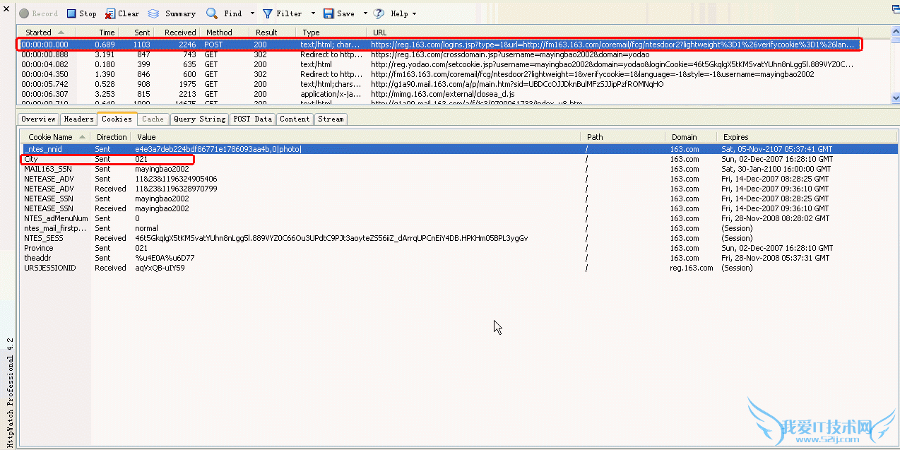 如上图所示City=021,其实是我163邮箱中设置城市信息值,在Cookies中记录为021(代表上海这个城市)
