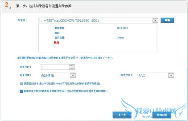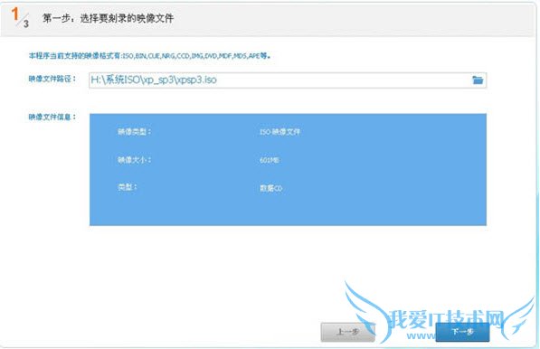 添加下载好的系统.ISO文件,并将空白的光盘放入光驱中(XP系统使用CD光盘,Vista和win7需要DVD光盘),然后点击下一步。