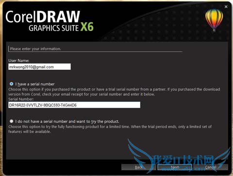 Step 2 -运行注册机,选择CorelDRAW Graphics Suite X6,即可获得序列号(暂时不要关闭注册机,后面还会用到),选择“I have a serial number”,将算的注册号填进下方框框;