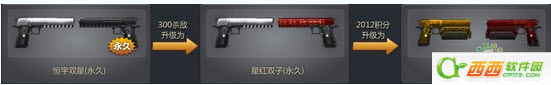 恒宇双星(永久)——300杀敌升级为“星红双子(永久)”——2012积分升级为“金红双蝎(永久)”。如图所示: