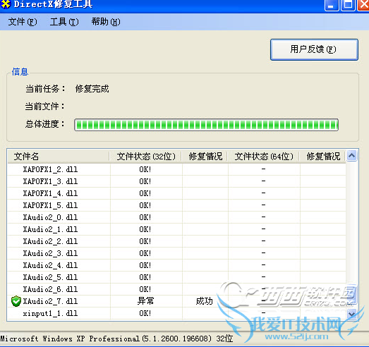 本程序的主要功能是检测当前系统的DirectX状态,如果发现异常则进行修复。程序主要针对0xc000007b问题设计,可以完美修复该问题。本程序中包含了最新版的DirectX redist(Jun2010),并且全部DX文件都有Microsoft的数字签名,安全放心。