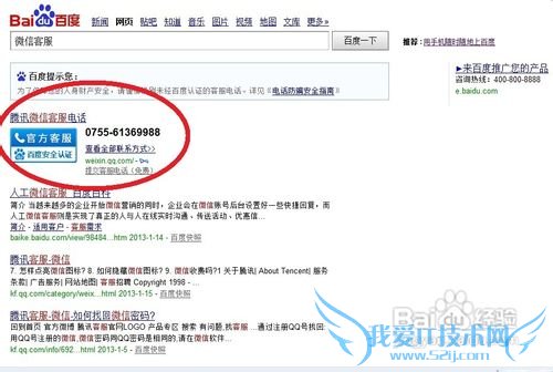 如果你不想通过打字的方式与对方交流的话,也可以通过电话能听到声音的方式来进行解决问题。那就是拨打腾讯微信的客服电话。在百度里输入,腾讯微信客服电话,第一个出来的就是。