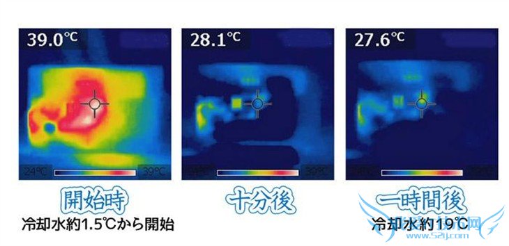 厂商提供的测试结果,用的是冷却水,散热效果相当迅速,不过用常温水应该就没这么明显了