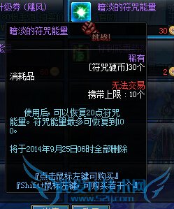 2014年9月11日更新维护后,游戏内商城将上架【精粹的符咒能量】:
