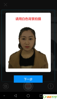 拍摄免冠一寸照的时候需要使用手机前置摄像头近景拍照,免冠、免围巾一寸照需要头像清晰、照片背景为白色、脸部无遮挡,拍摄后如果不清晰可以返回重新拍照。如下图