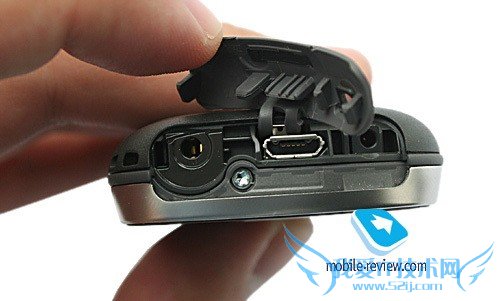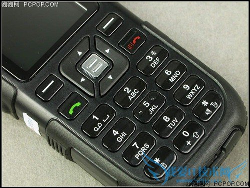 该机采用独立的数字按键设计,材质为硬塑,按键与键盘面板结合的相当紧密,这对于三防手机来说是很重要的。有意思的是,该机的2.5mm耳机接口、Micro USB数据线以及充电器插孔被隐藏在底端,有较大的保护板保护,很好的增加了机身的密闭性。