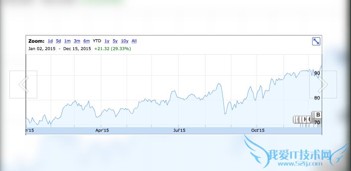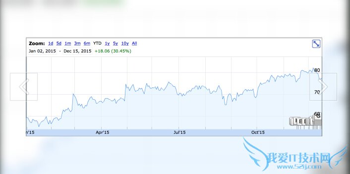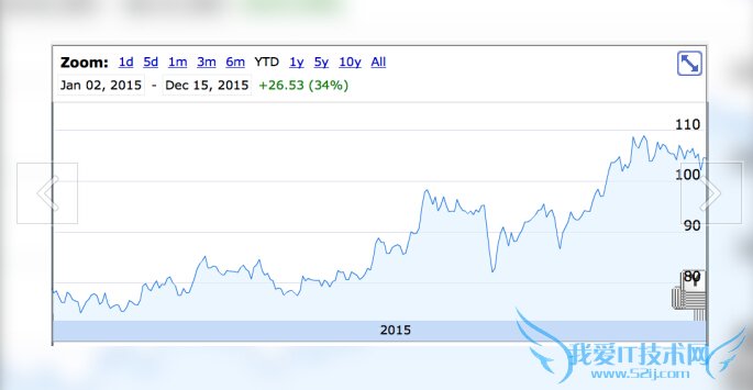 2、Facebook (NASDAQ: FB):2015年,Facebook向世界证明:它们对待移动业务是严肃、认真的,而且市场反应良好。截至今日美股收盘,Facebook股价为106美元,这意味着今年以来该股涨幅达到34%,而对应106美元收盘价,该公司市值则超过3000亿美元。