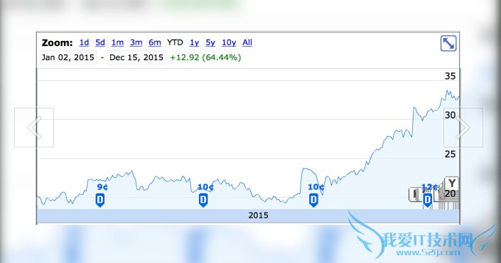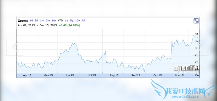 6、英伟达(NASDAQ: NVDA):在2015年的第一个交易日,芯片制造商英伟达每股20美元,截至今日美股收盘,英伟达股价约为33.17美元,近年以来该股股价涨幅约65%。该公司目前市值近180亿美元。