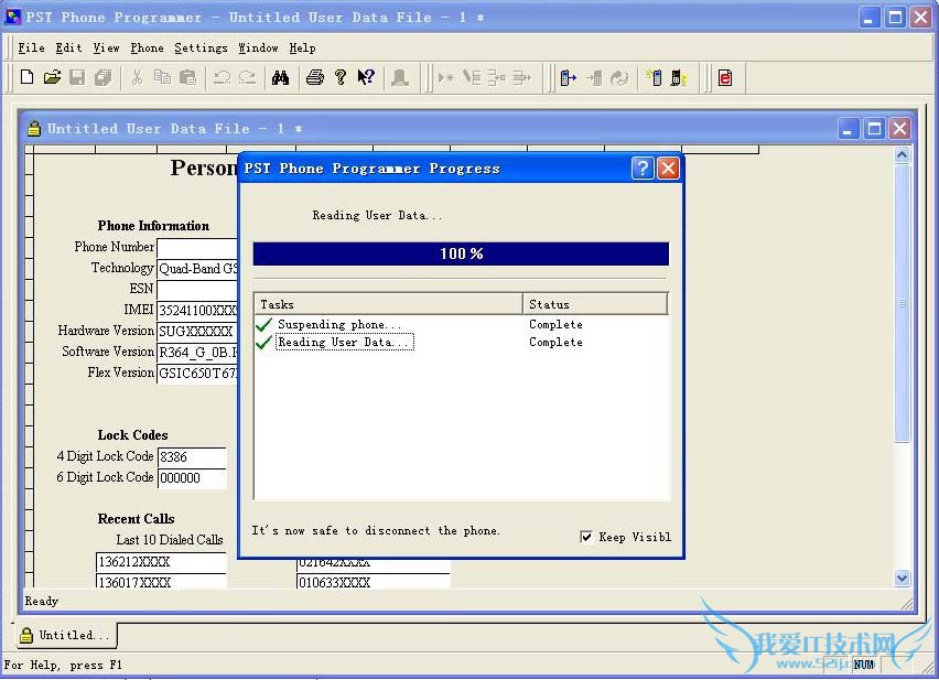 四、接着PST就开始读手机的相关信息了,到达100%就已经完成了,如下图: