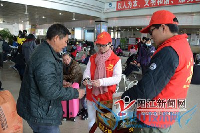 据悉,“青春情暖,服务春运”系列活动共组织近百名志愿者走进车站、驿站服务春运。由团市委、粤运朗日集团、市志愿者联合会主办的“情暖汽车站,温暖回家路”活动持续至1月30日;由团市委、中石化阳江分公司、市志愿者联合会主办的“情暖驿站,满爱回家”活动持续至2月22日。