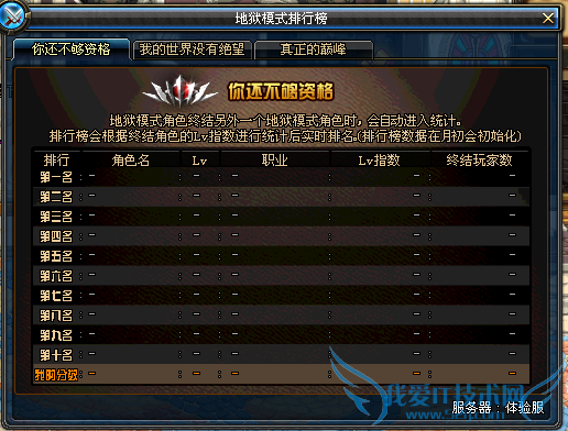 10月25日dnf国服体验服更新新增了一个地狱模式,这次的地狱模式跟以前的地图地狱级别是不同的,而且将游戏的整体难度像单机游戏那样提升了很多个等级,这个模式中玩家会受到很多的限制,如果你对自己的能力有信心可以试着挑战下这个模式。